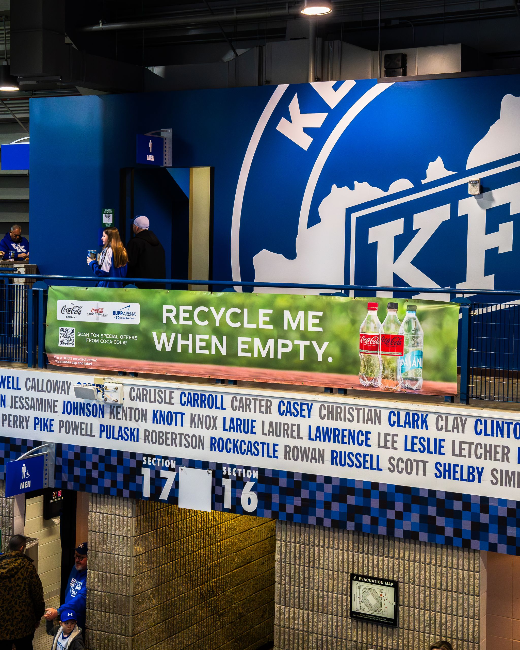 “As the local bottler, we steadfastly believe in the power of community partnerships,” said Esther Moberly, senior manager for Coca-Cola Consolidated. “Our goal, alongside Rupp Arena and other community partners, is to make recycling the go-to option. Our cans and bottles are made to be remade – it’s integral that we work together to put our planet first.”